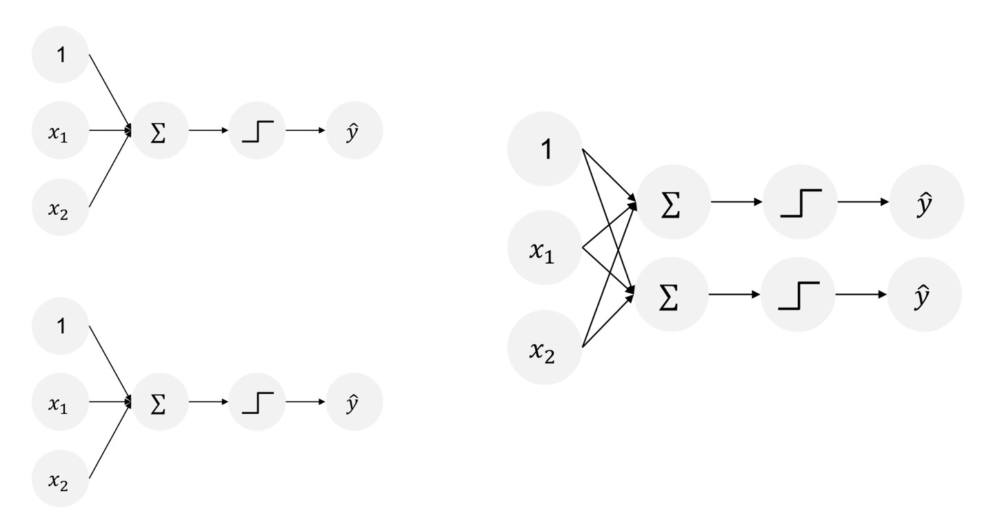 - 뉴럴 네트워크를 형성하기 위해 퍼셉트론을 쌓는 것