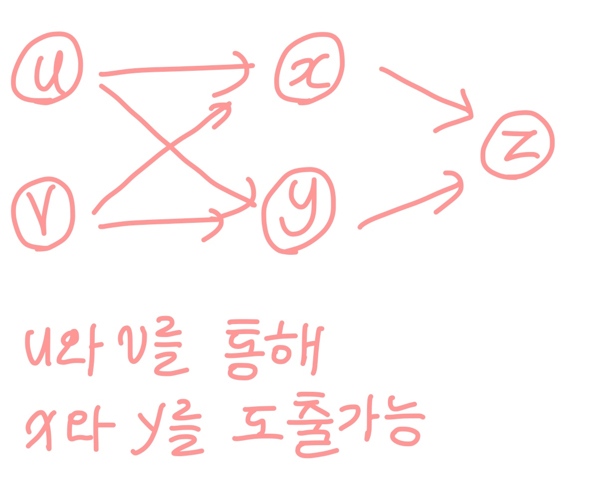 위에서 중간 변수가 2개라면 각각의 경로(?)에 대해서 연산을 해서 마지막에 더해주면 된다고 했습니다.