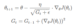 하지만, 스텝이 진행될 수록 G_t가 무한대로 발산하여 스텝 사이즈가 0으로 수렴하는 문제가 발생합니다.