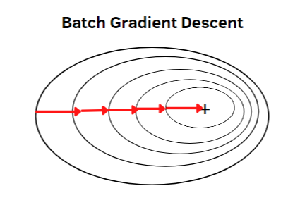 Batch gradient descent는 loss function을 미분한 기울기에 수직인 방향으로 작동이 되는 것을 확인할 수 있습니다.