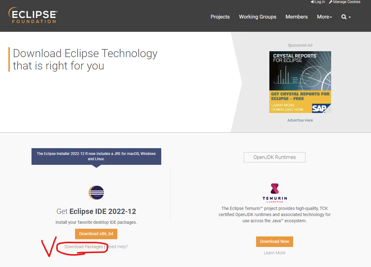 클릭해서 Eclipse IDE for Enterprise Java and Web Developers에서 설치 환경에 맞는 파일을 다운 받아 주면 됩니다.