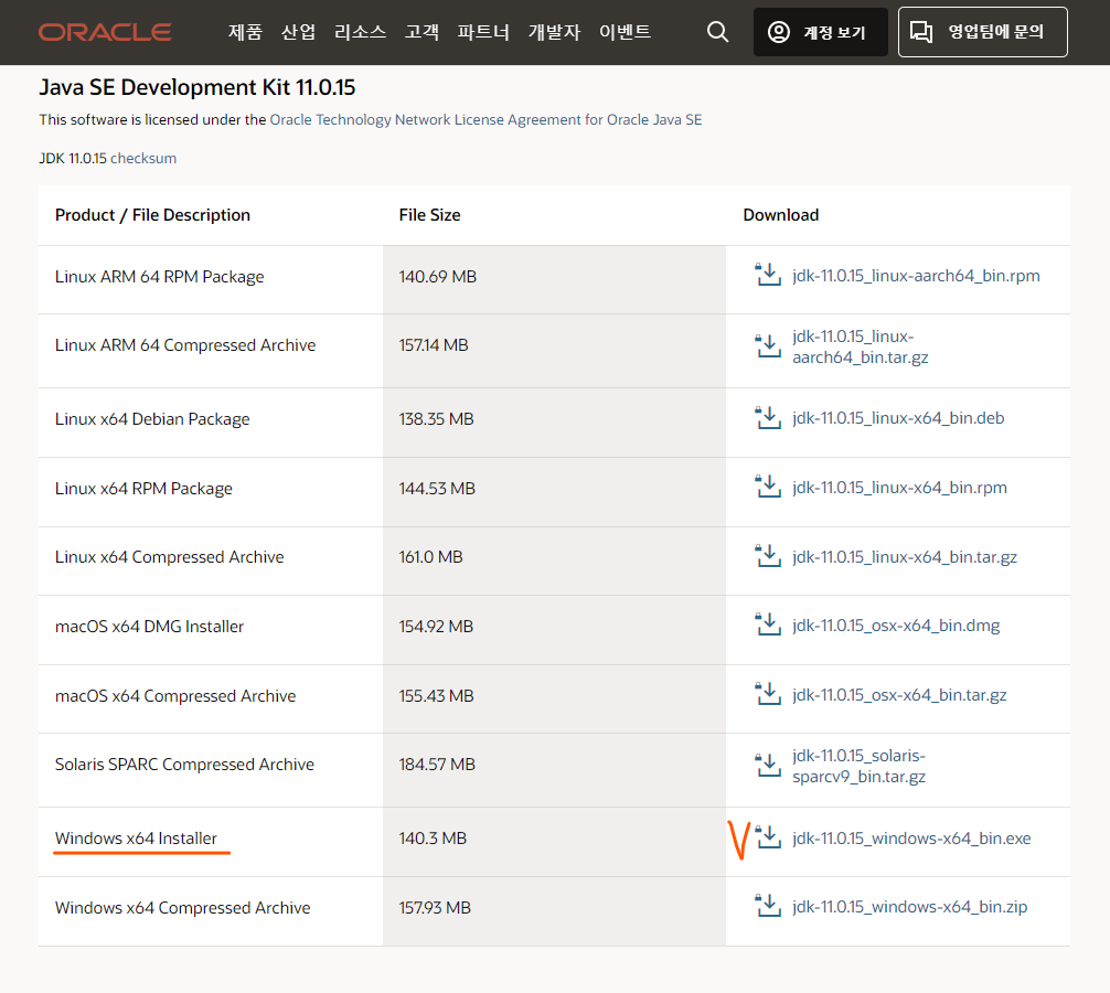 가장 선호하는 버전을 설치해 주면 됩니다. 저는 11.0.15 버전을 설치했습니다.