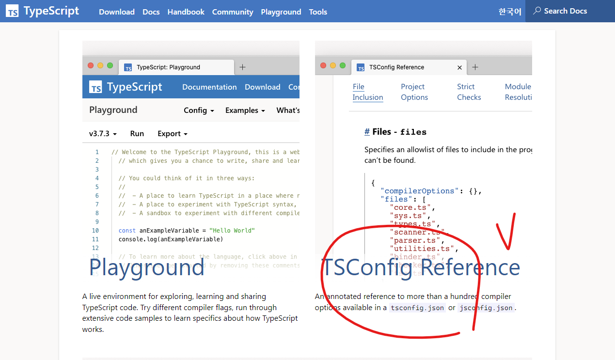 오른쪽 TSConfig Reference를 클릭해 줍니다.