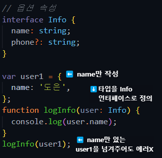 타입스크립트는 인터페이스를 이용하여 객체를 선언할 때 좀 더 엄밀한 속성 검사를 진행하는데요.