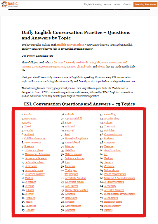 site = 'https://basicenglishspeaking.com/daily-english-conversation-topics/'