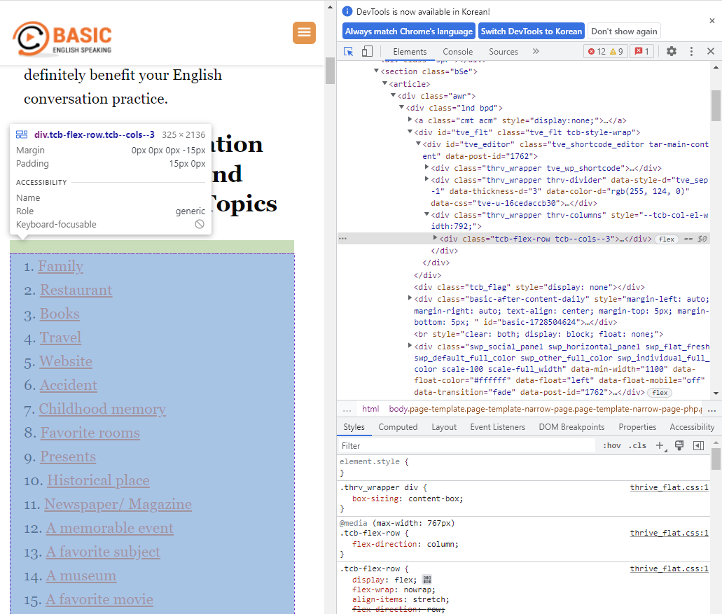 위 화면에서 보이는 class="thrv_wrapper thrv-columns"가 되겠는데, 이 값이 unique한지는