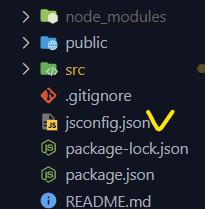 우선 최상단 폴더 안에 jsconfig.json 파일을 생성해줍니다.