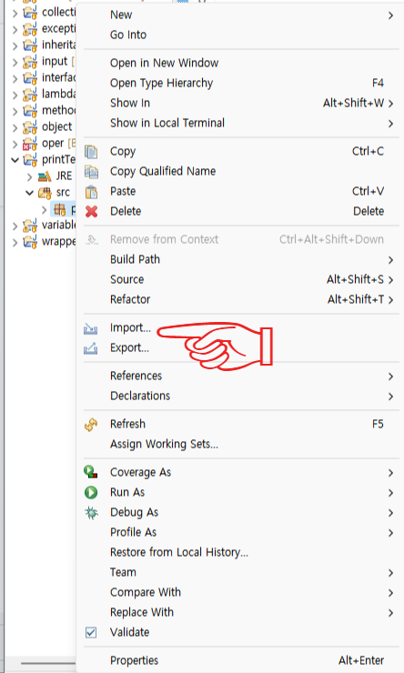 1. 배포할 클래스 또는 패키지 우클릭 후 Export 클릭