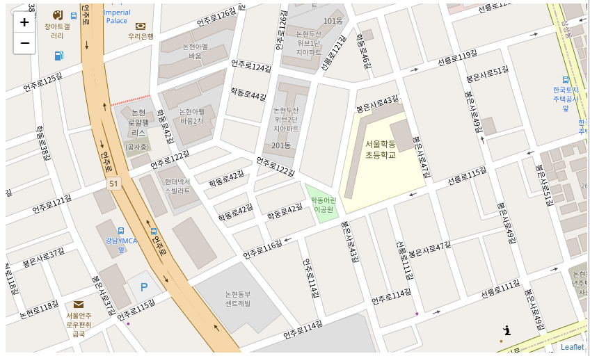 map_folium = folium.Map(location=[37.511835, 127.038549], zoom_start17, tiles='Open Street Map')
