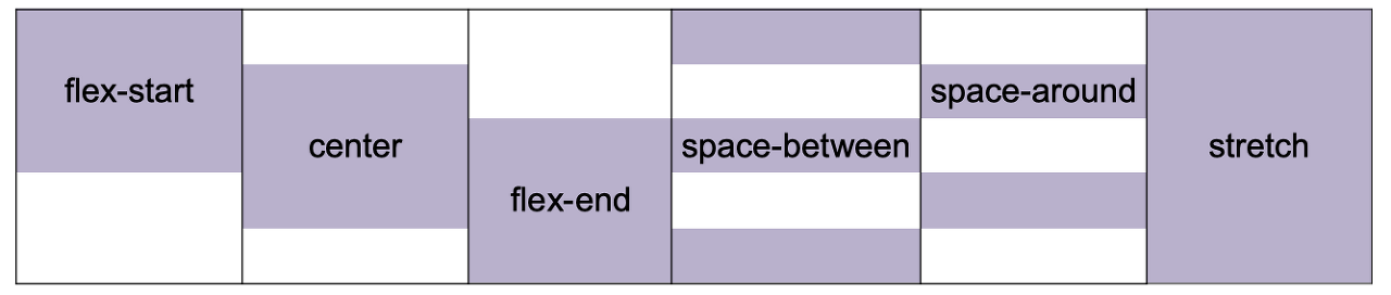 align-content: flex-start | flex-end | center | space-between | space-around |