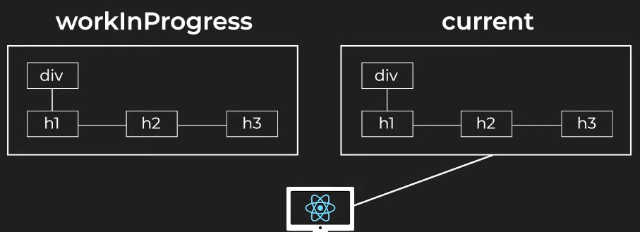 ✔️ 여기서 workInProgress 트리는 업데이트된 UI를 렌더링하는 데 사용되므로 현재 트리로 교체