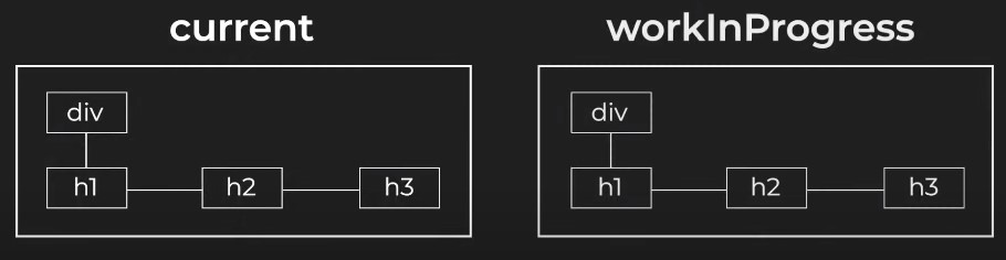 ✔️ React가 current 트리를 살펴보면서 기존의 각 Fiber 노드에 대해 workInProgress 트리를 구성하는 alternative 노드를 생성