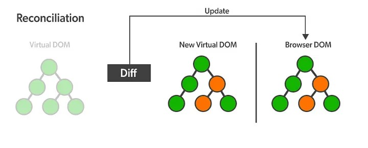 → 컴포넌트에서 state가 변경될 때, 렌더링된 요소와 새로 반환된 요소를 비교하여 실제 DOM을 업데이트할지 말지 결정해야 하는데, 이때 달라진 부분만 업데이트하게 된다.