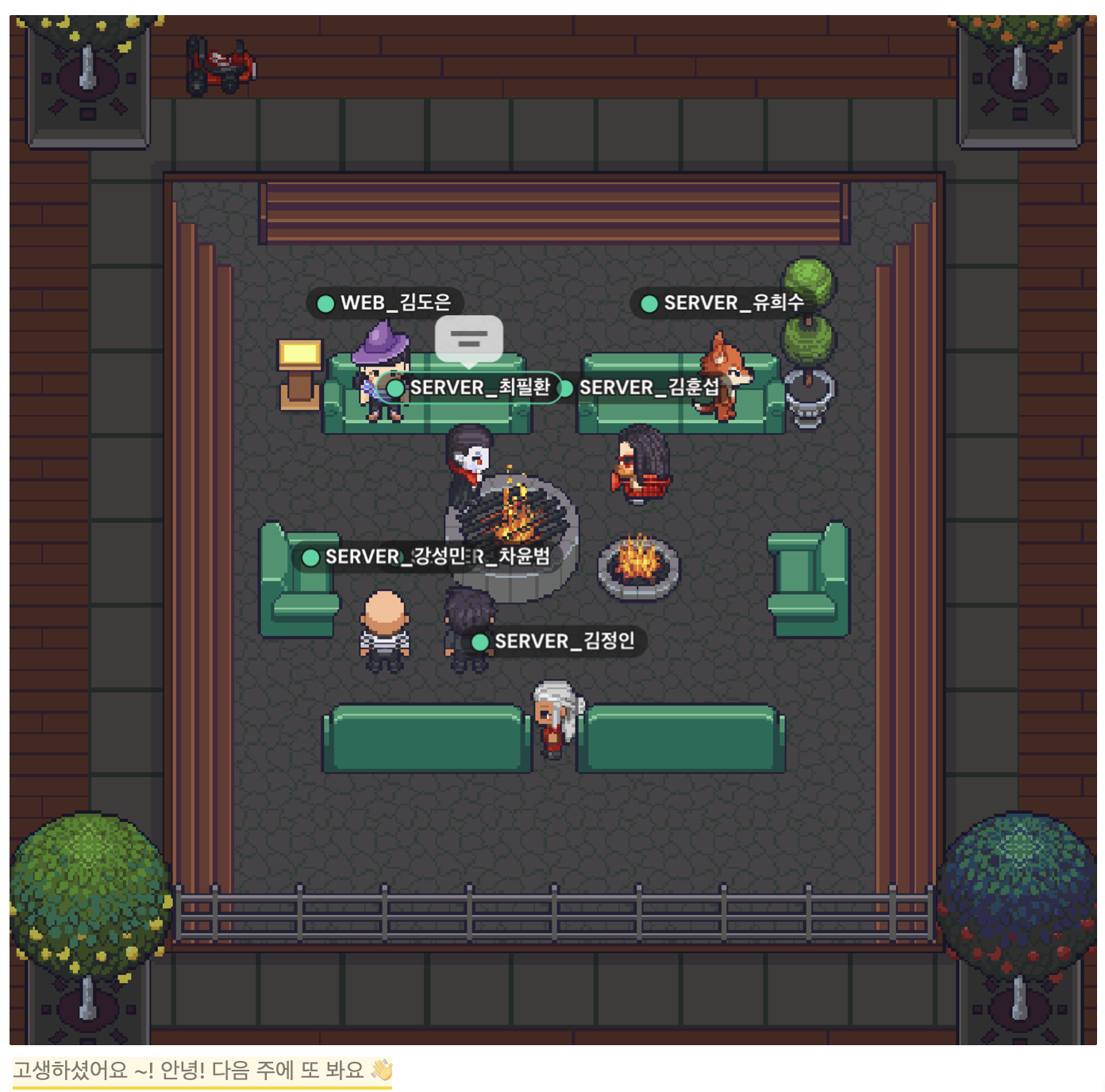 약속한대로 시간에 맞춰 모닥불이 모락모락 피는 게더 그곳에서 만나 스터디를 시작했어요.