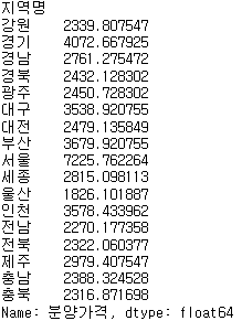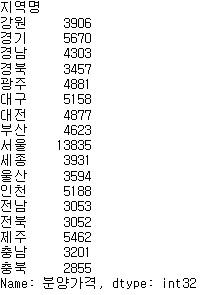 df['분양가격'].astype(int) # 공백문자가 있어서 error