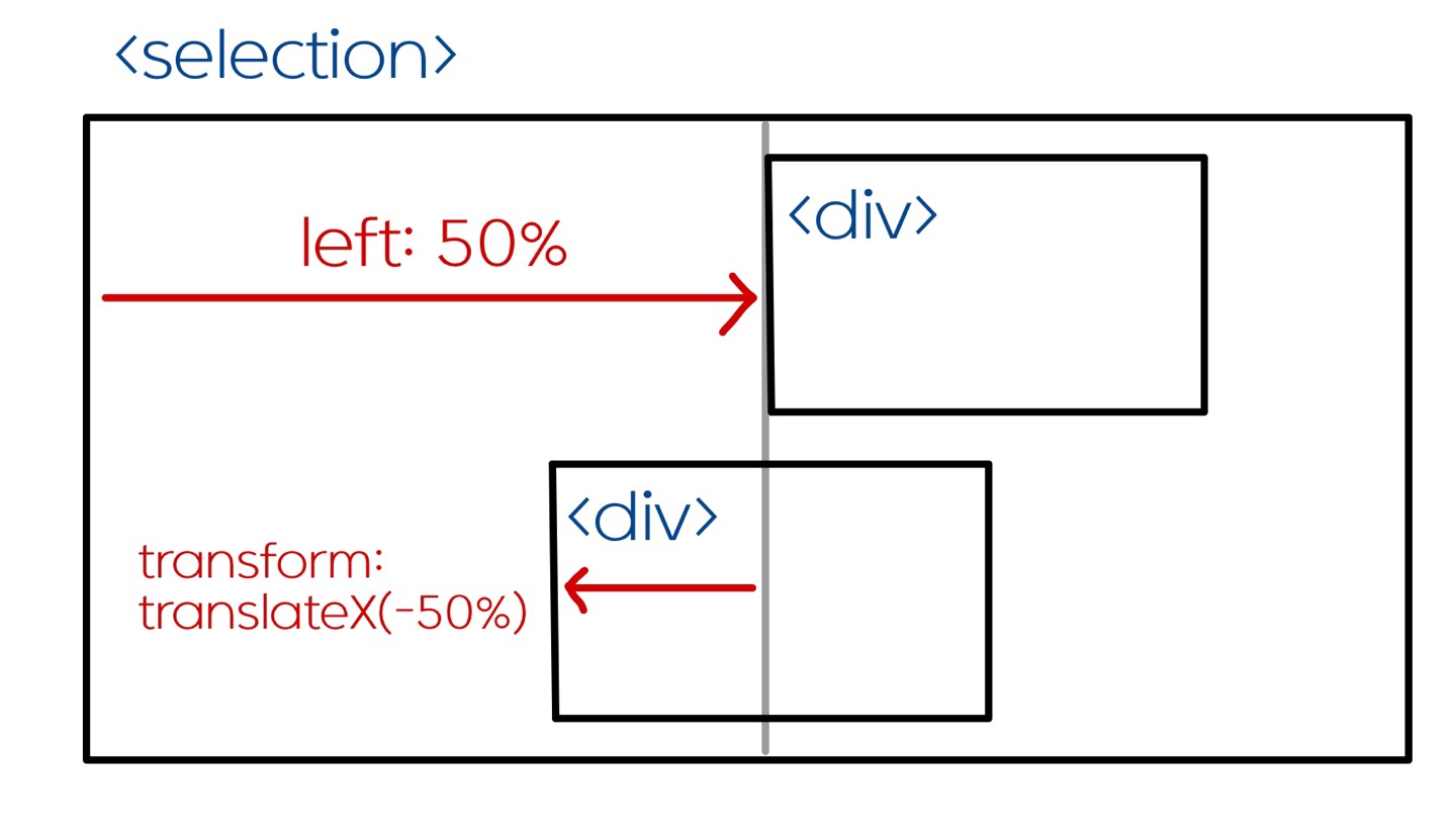 left: 50%와 transform: transleteX(-50%) 적용 과정은 다음과 같습니다.