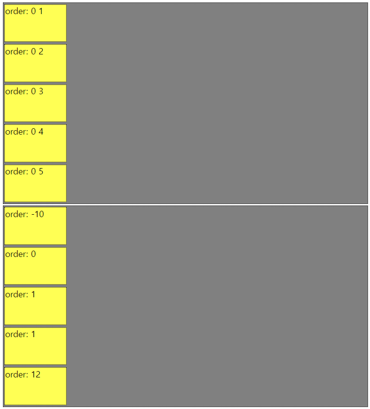 우선 모든 엘리먼트의 order를 같은 숫자로 주게 되면 내가 입력한 순서대로 나열되게 됩니다.