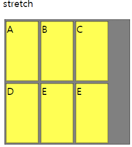 | stretch | 컨테이너의 교차 축을 채우기 위해 아이템을 늘림 |