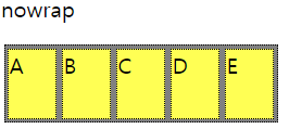 | nowrap | 모든 아이템을 여러 줄로 묶지 않음(한줄에 표시) |