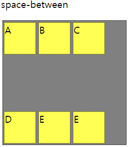 | sapce-between | 시작 아이템은 시작점에, 마지막 아이템은 끝점 정렬 |