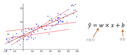 선형 회귀의 핵심은 학습 데이트와 가장 잘 맞는 직선을 찾는 작업이라고 할 수 있습니다.