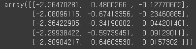 pca_data[:5] # 차원이 2개로 축소되었음을 확인 가능