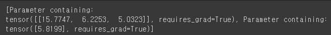 model = nn.Linear(3, 1) # 입력 3개 받아서 1개 출력