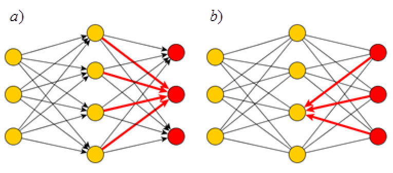 순전파의 반대방향으로 전파시키는 방법으로 출력층(output layer)으로부터 입력층(input layer)까지 역으로 나갑니다.